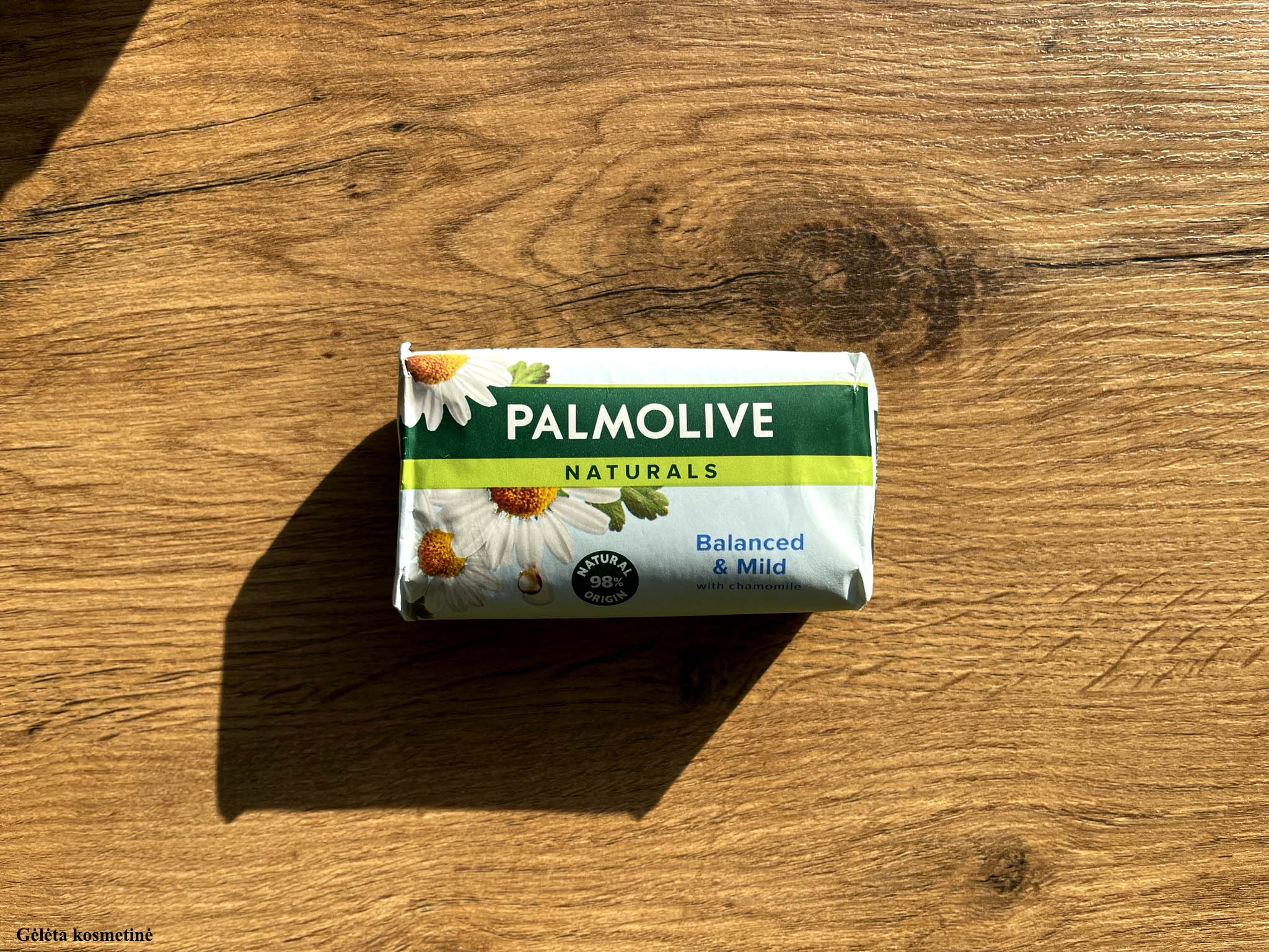 O šiandien man norisi labai trumpai parodyti šiuo metu naudotą muilą. Man regis Palmolive produktai yra neatsiejami nuo mūsų vaikystės? Tuo metu naudodavome dušo želė, muilus būtent iš Palmolive, kol aplinkiniai naudojo visokias Kre-kre, aš jaučiuosi tą etapą praleidusi ir pakankamai greit įšokau į ne vienus metus trukusią Palmolive erą. Kartais mane pasiveja nostalgiški prisiminimai ir aš nusiperku kažką minimaliai, tos nostalgijos vedama. Panašiai buvo ir su šiuo muilu - regis pamenu vaikystėje beveik nuolat lydėjusį ramunėlių kvapą, tad šiuo metu mano vonioje gyvena toks muilas iš Palmolive.